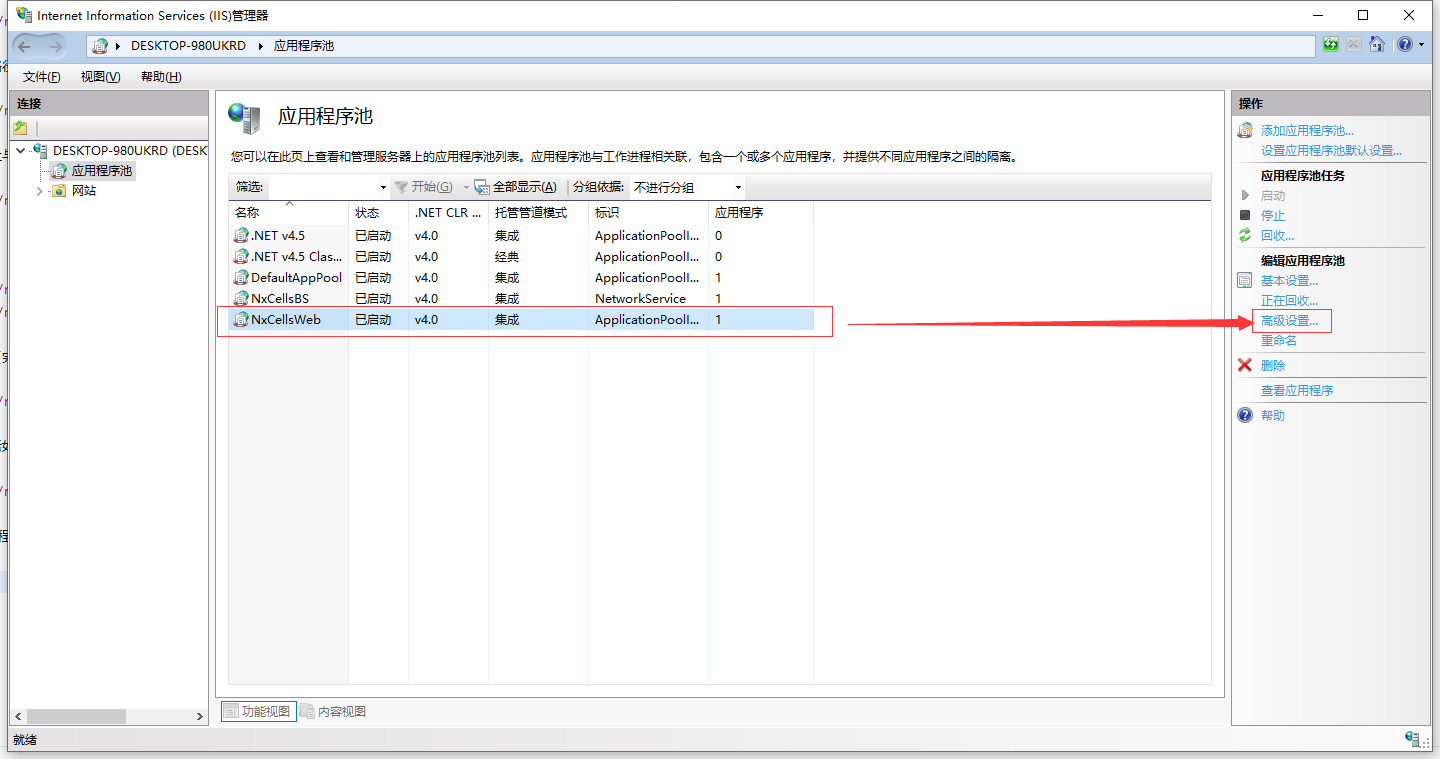 检查IIS的应用程序池