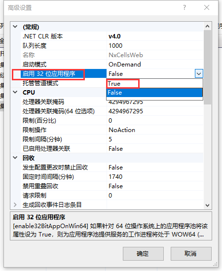 将启用32位应用程序改为True