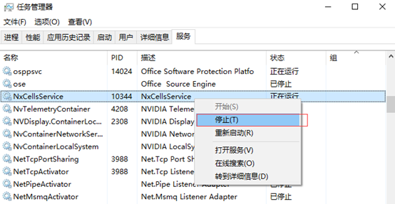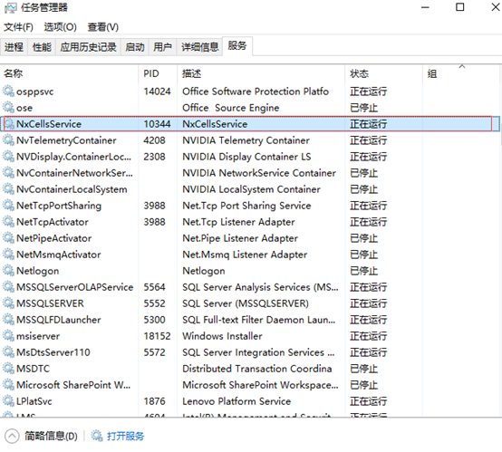 点【确定】后,弹出服务窗口界面,找到”NxCellsService”,如下图:
