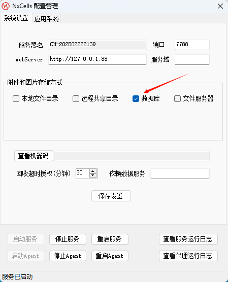 3,勾选数据库,文件与附件即会存储到数据库。