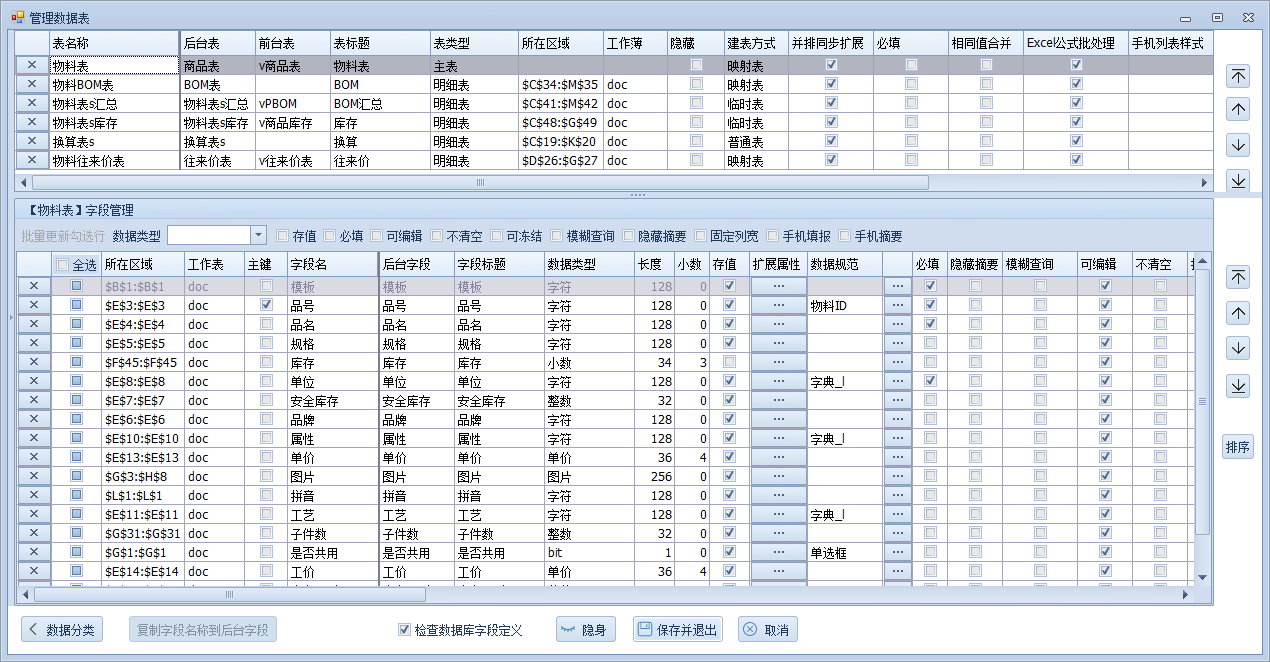 在设计的过程或者使用的过程中,会发现有些字段在之前定义中没有定义到,但是在使用过程中需要用到,那么我们就可以通过追加的形式将其追加到表中。例如,在上方的设计中,物料表中没有图片字段,需要加上。实现方法如下: