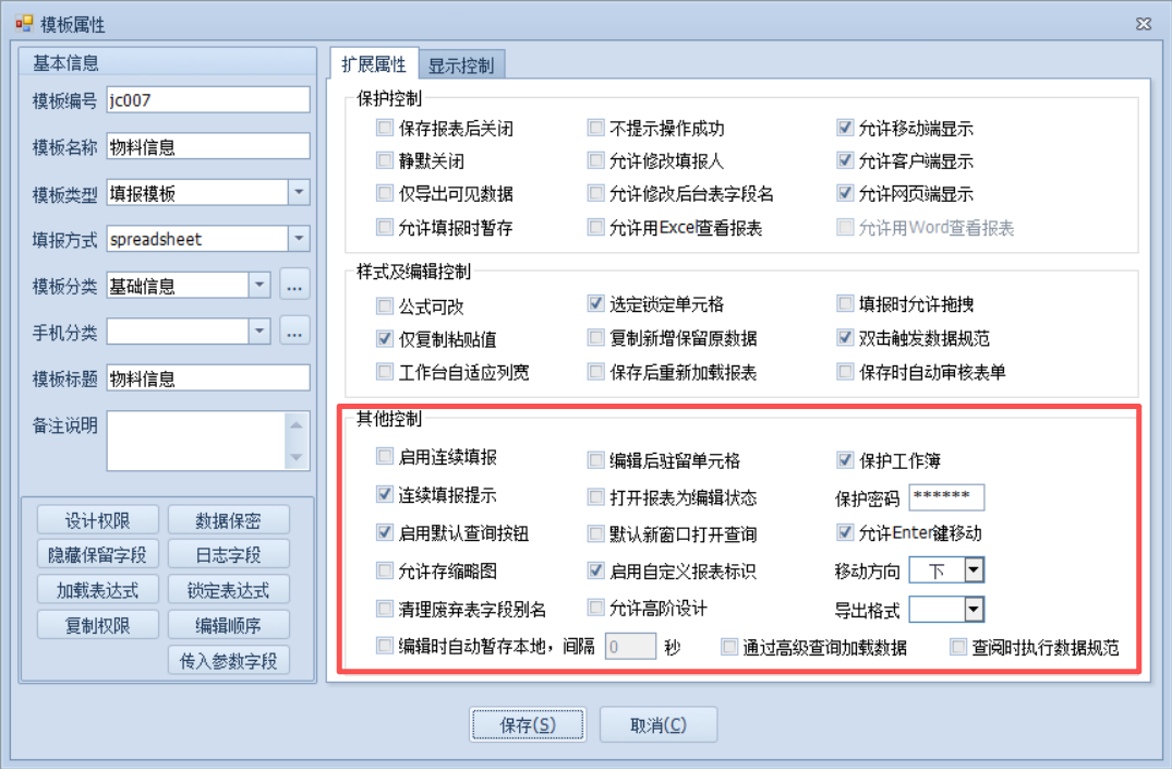 【保护工作薄】勾选此选项后,工作薄会被保护。此项不勾选,数据规范设置列表方式,下拉等将不起作用。