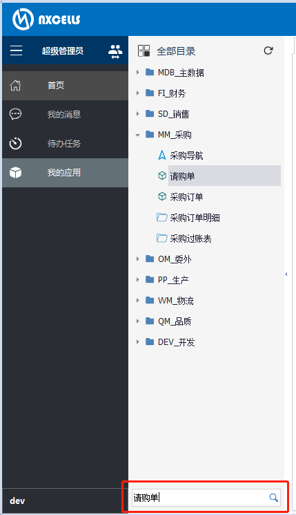 后续如果表单及树增多,为了方便查找,可以通过左下方的搜索框来查找,如下图: