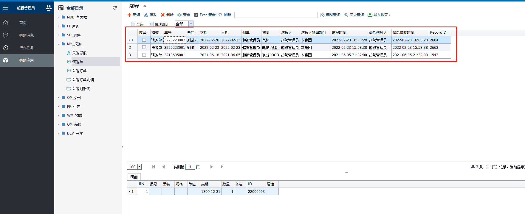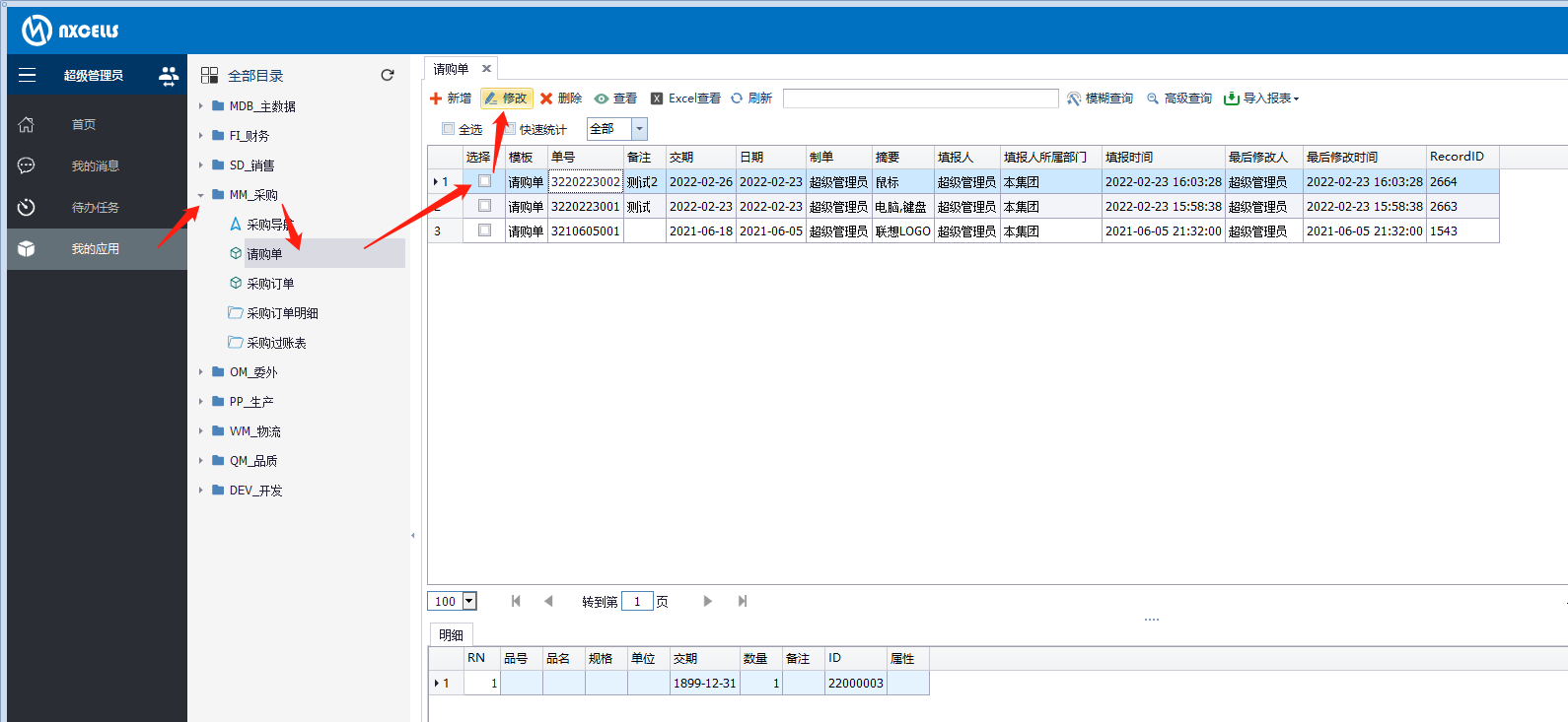 勾选要修改的表单,然后点击上方的修改即可进入表单进行数据修改