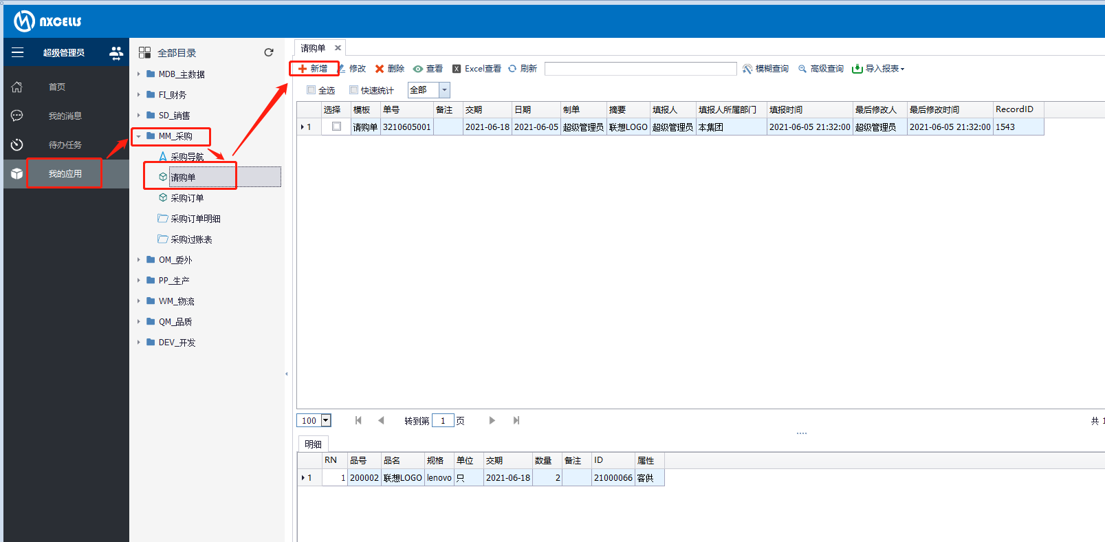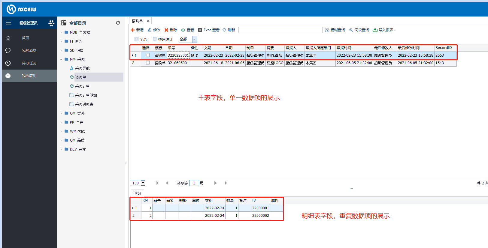 每新增一条数据,都会在总表界面得到展示,效果如下: