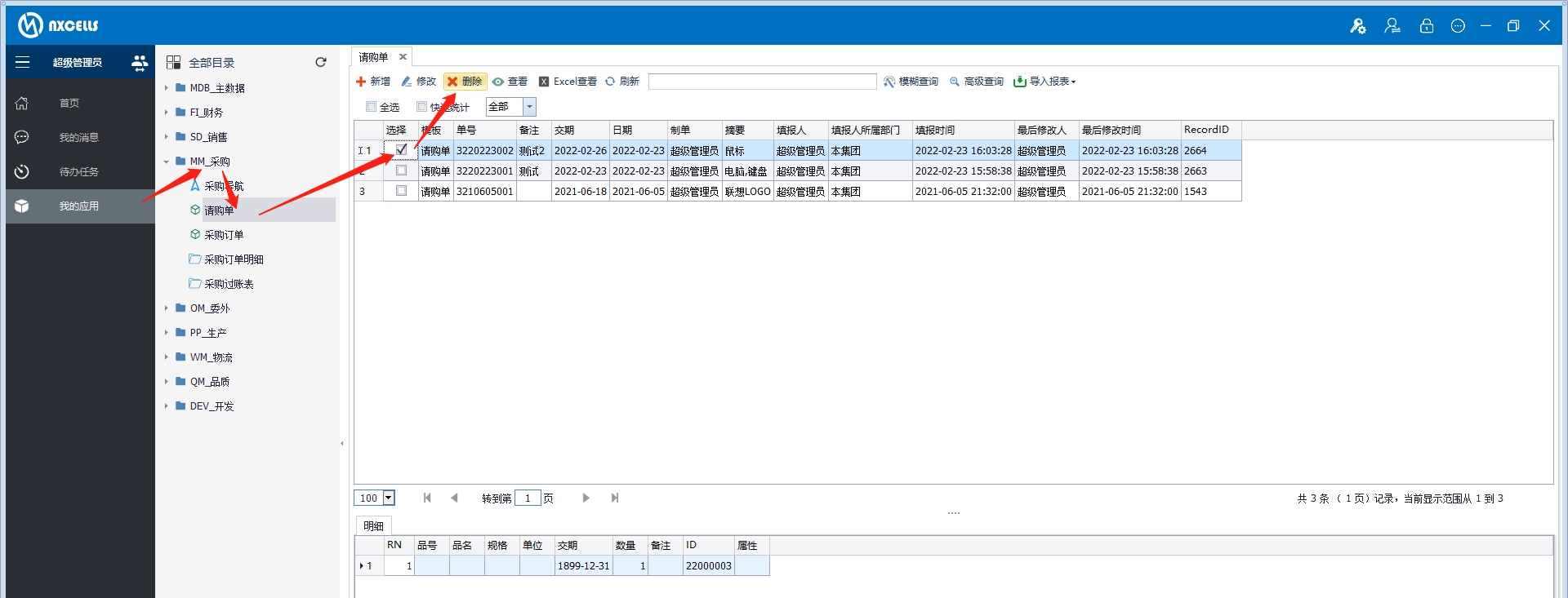 勾选要删除的表单,然后点击上方的删除即可对表单进行删除。