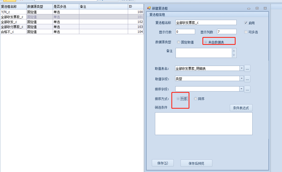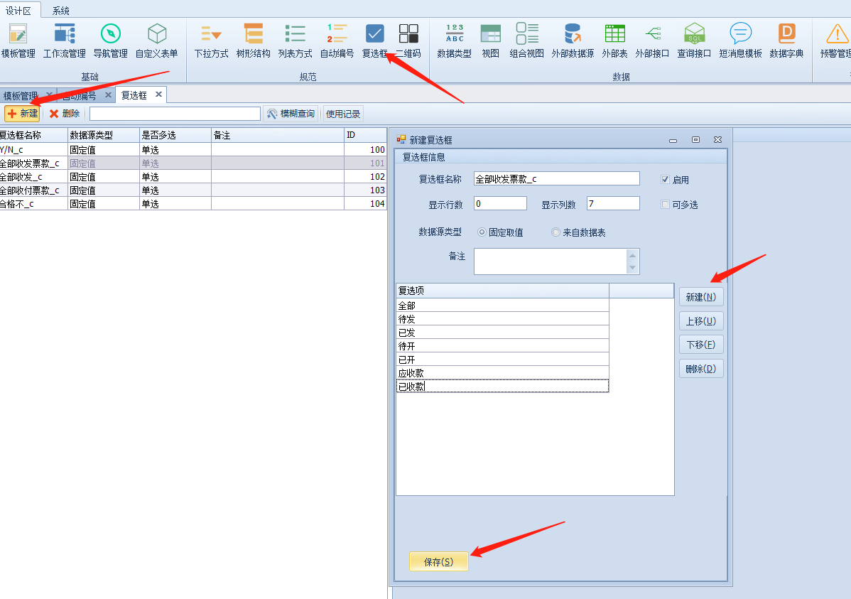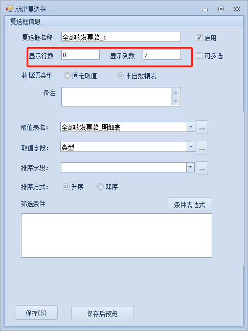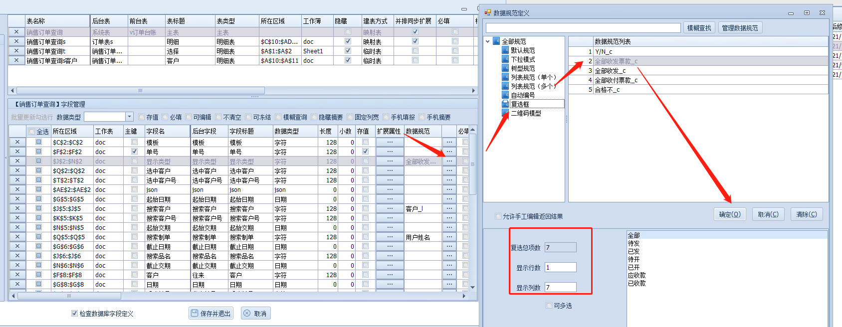 - 场景-前台表和自定义报表标识组合展示出入库情况
