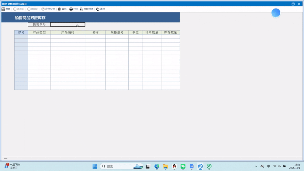销售订单表(销售订单明细中存储商品名称、型号、编码、订单数量);