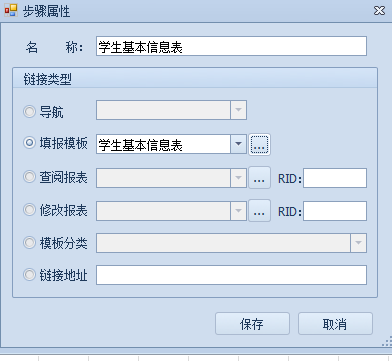 编辑属性:如果要进行的操作是点击导航新建一个表单,无论是填报模板还是查询模板,都选择【填报模板】;