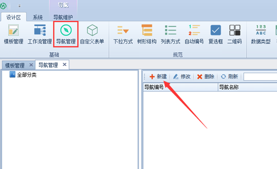 打开NxCells设计器,【设计区】>【导航管理】>【新建】