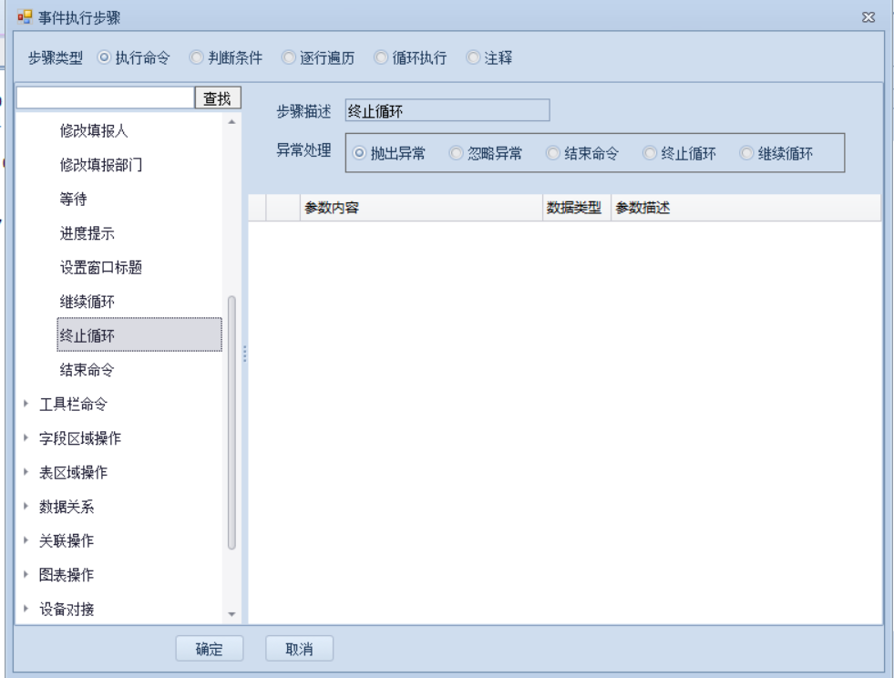 上一页 在报表命令中使用该功能后,当命令执行到了这一步,就会终止循环,并跳出该循环。 下一页作者:wang 创建时间:2021-11-04 14:37最后编辑:test 更新时间:2025-10-14 15:38