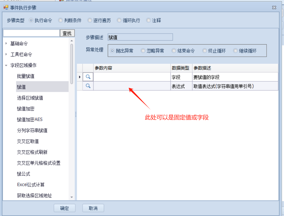 上一页 赋值是将一个固定的值或者来源字段上的值赋给另外一个字段。备注:字符串常量要用英文单引号包括。 下一页作者:wang 创建时间:2021-11-04 19:38最后编辑:test 更新时间:2025-10-14 15:38
