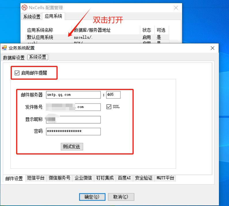要能够成功的使用此功能,首先需要在服务端的配置管理器中配置好发送邮箱。
