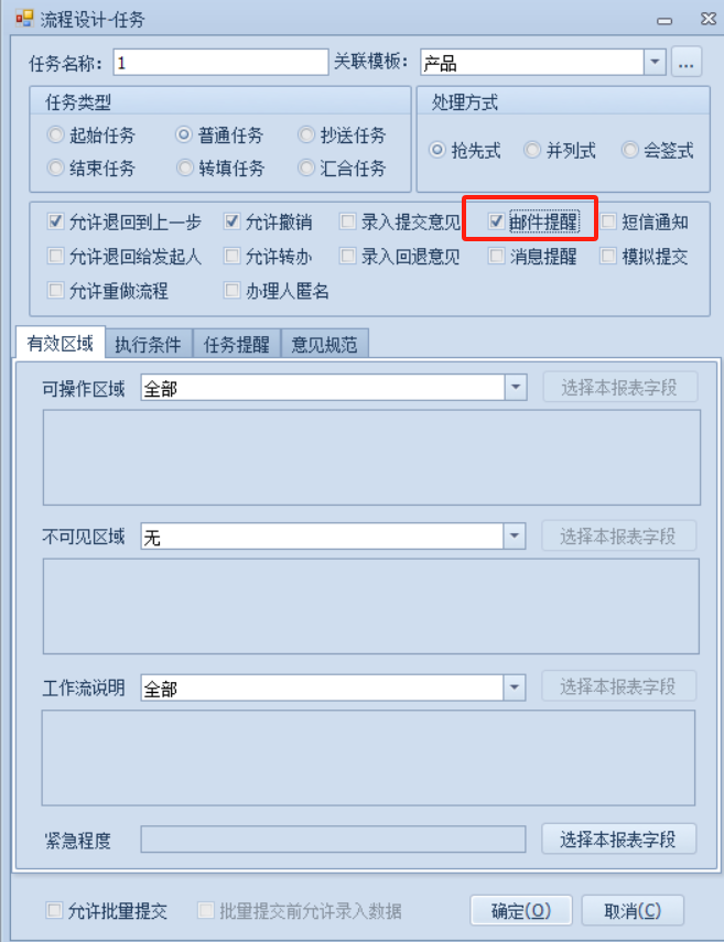 上一页 在流程设计过程中,勾选邮件提醒变可在接收流程的同时接收到邮件提醒。前提:像报表命令和新建公式发送邮件那样成功将邮件服务器配置成功。 下一页作者:wang 创建时间:2021-11-04 19:55最后编辑:test 更新时间:2025-10-14 15:38