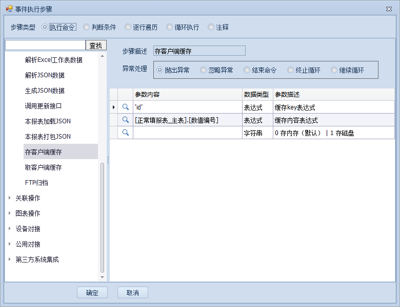 上一页 版本要求:Nxcells v4.1.0+将想要的数据存储到缓存中 表达式可以是字符串,也可以是字段。 下一页作者:wang 创建时间:2021-11-04 21:45最后编辑:test 更新时间:2025-10-14 15:38