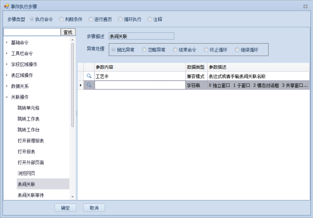 上一页 即通过报表命令来调取表间关联。 注:系统默认独立窗口,新增共享窗口模式,选择此模式,点击下一个关联会将原关联最小化。注意事项:若多个关联的超链接绑定字段为同一字段时,只打开第一个满足条件的关联。 执行表间关联视频 下一页作者:wang 创建时间:2021-11-04 21:50最后编辑:wang 更新时间:2025-12-19 16:45