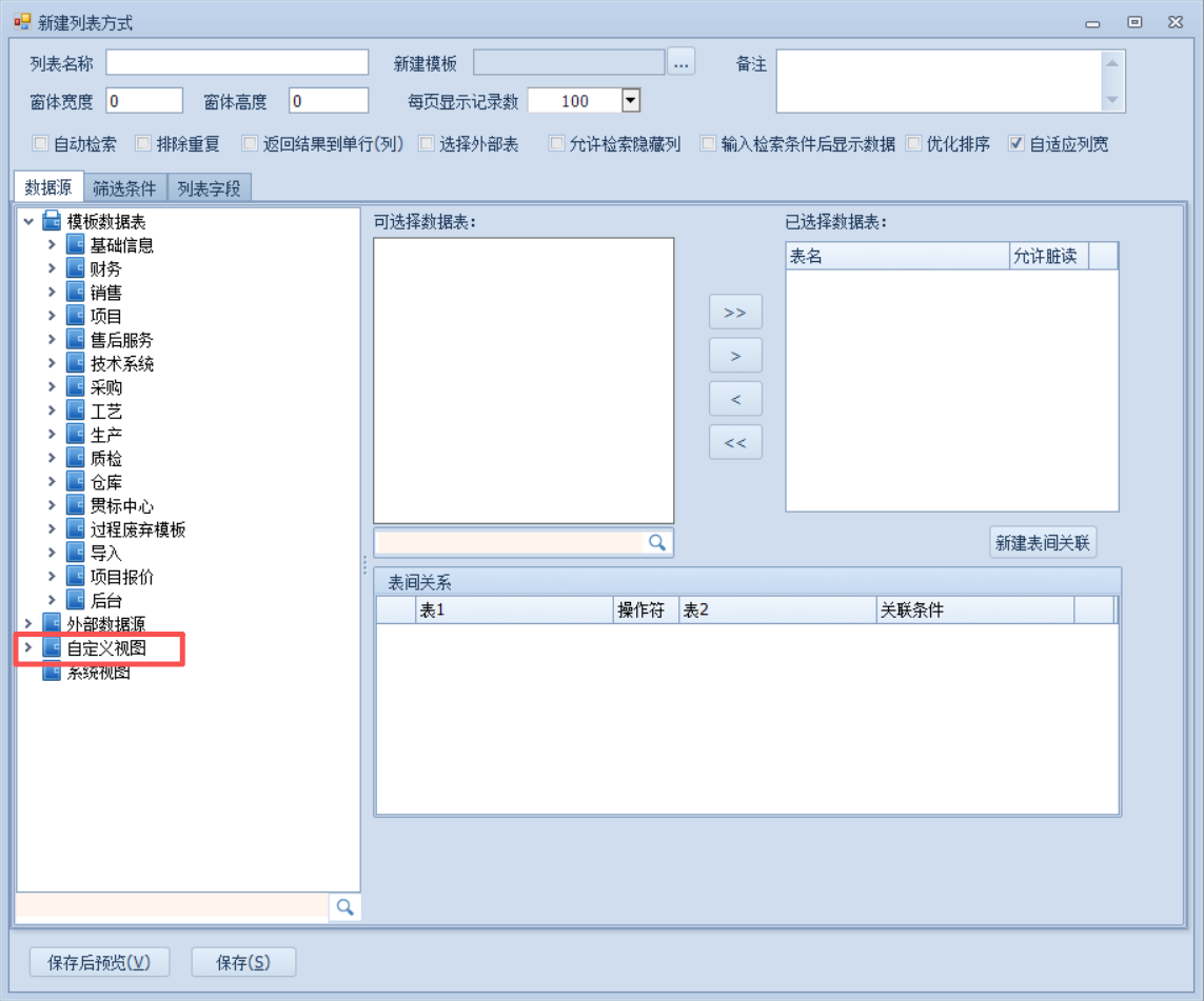 - 场景-前台表和自定义报表标识组合展示出入库情况