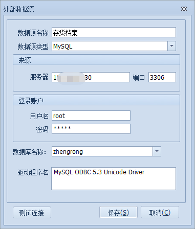 输入相关信息后,测试连接