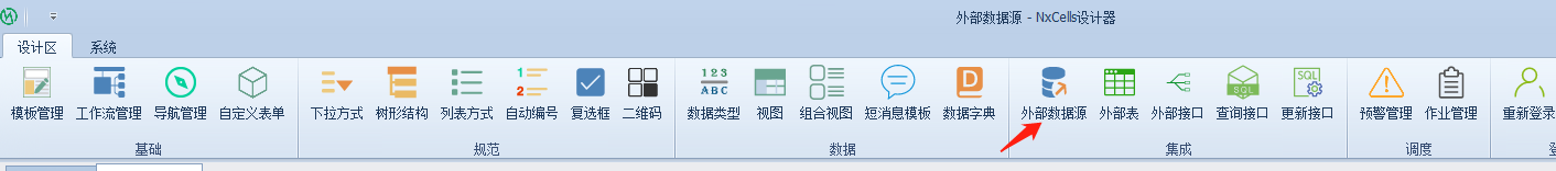 打开外部数据源,设置连接属性。