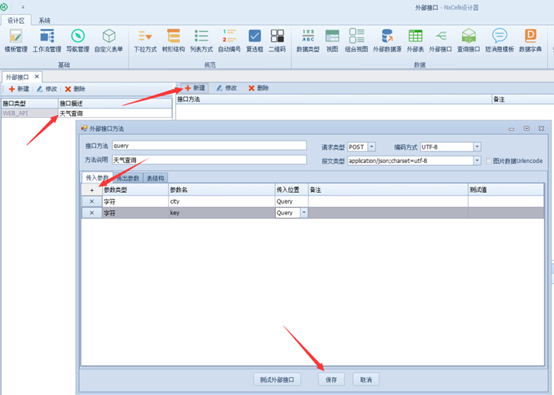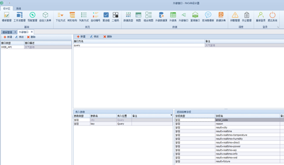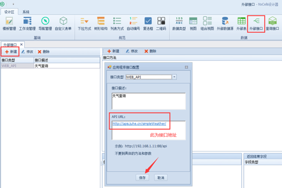 接口方法建立完毕之后,我们可以通过【测试外部接口】按钮,来检验建立的接口方法是否可行,【传入参数】-填写【测试值】,点击【测试外部接口】即可。