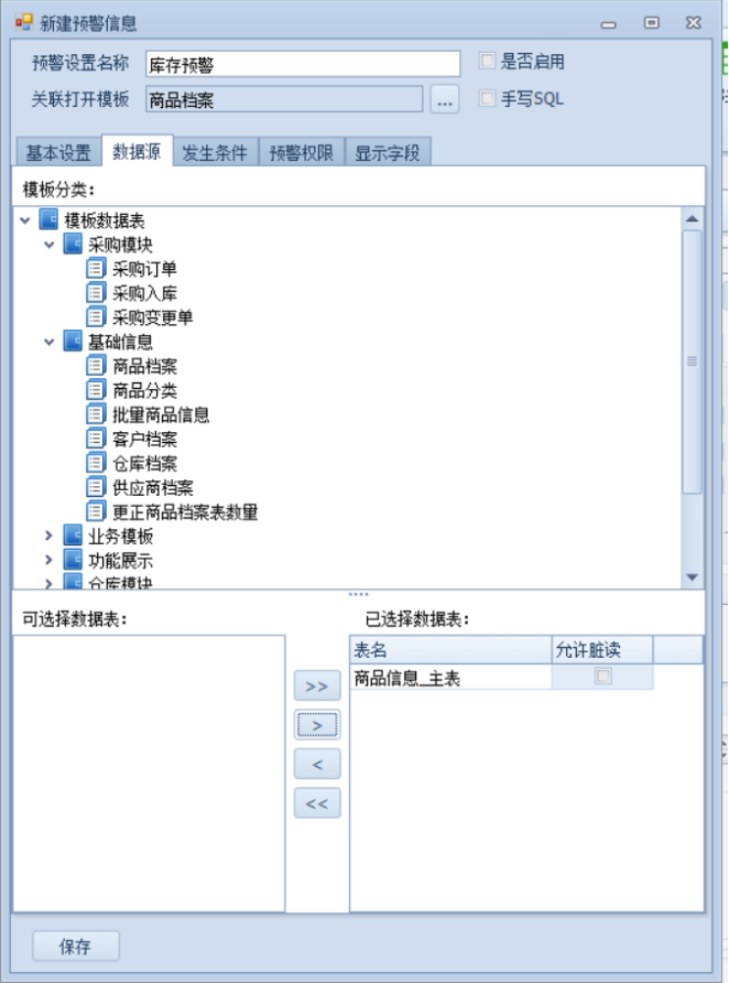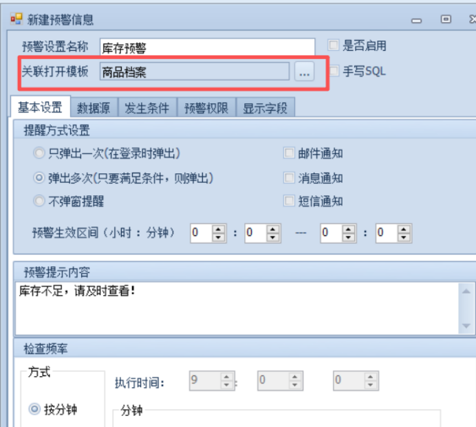 5.0.7版本 预警支持手写sql,并且支持关联打开报表