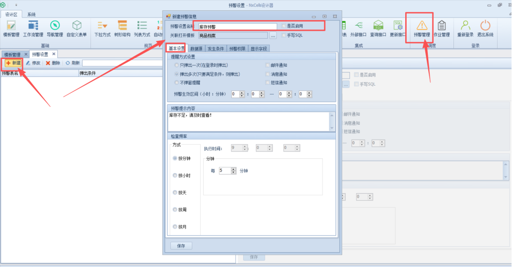 【设计端】-【设计区】-【预警管理】,如下图: