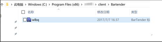 3、在服务器端NxCells的安装目录下的server目录下(默认:“C:\Program Files (x86)\NxCells\”)创建一个文件夹命名为“Bartender”,将wlbq.btw文件复制到Bartender目录下,将此文件放到目录下才方便调用,