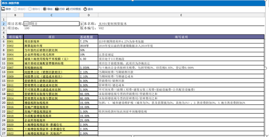 4 可以设置每个项目的测算参数