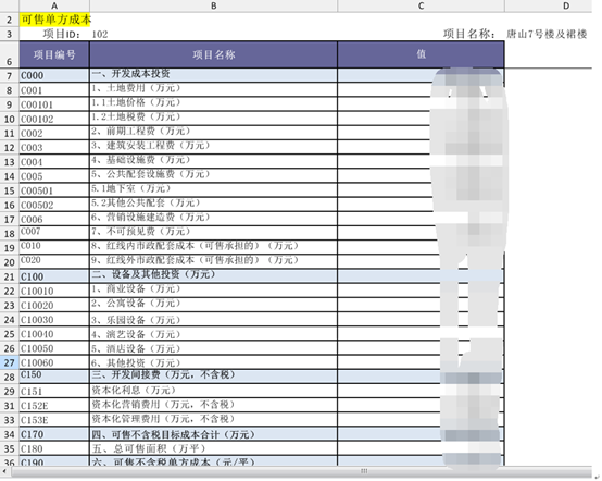 15.可售单方成本查询