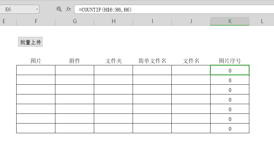由于案例是提取到七个图片主表中去,所以在图片存储表的时候将同一个文件夹下的图片进行了排序,用的是COUNTIF函数