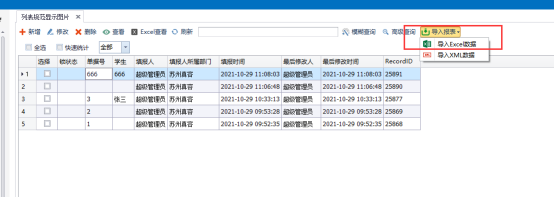- 场景-前台表和自定义报表标识组合展示出入库情况