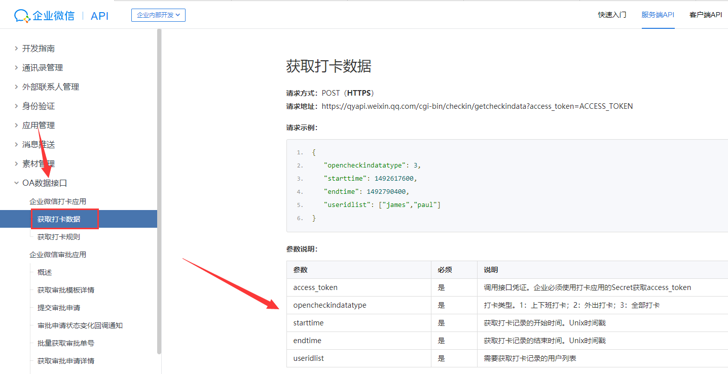 获取企业微信打卡信息