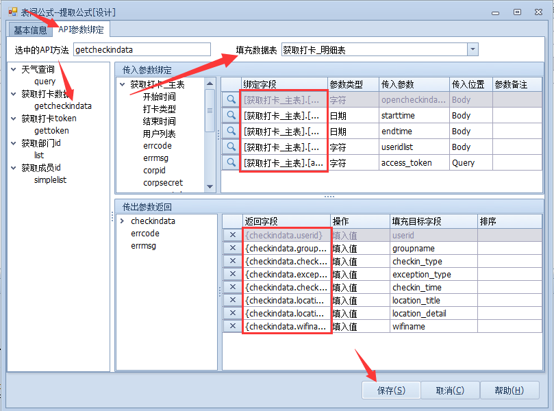 点击【保存】,获取打卡数据通讯及方法就建立完毕了。
