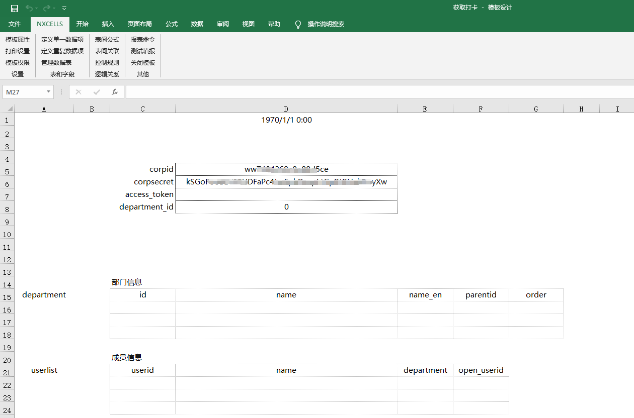 另外,在获取access_token、部门ID和成员ID时,可以在sheet 2中创建一个辅助表,测试填报时,我们只需要看到最终结果就好,参考如下图: