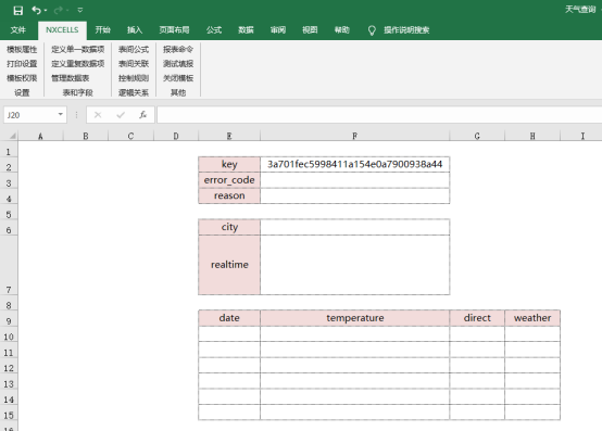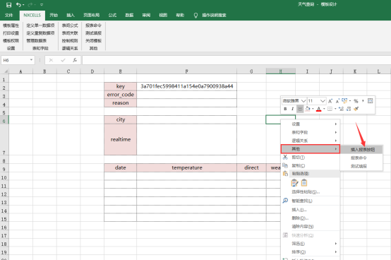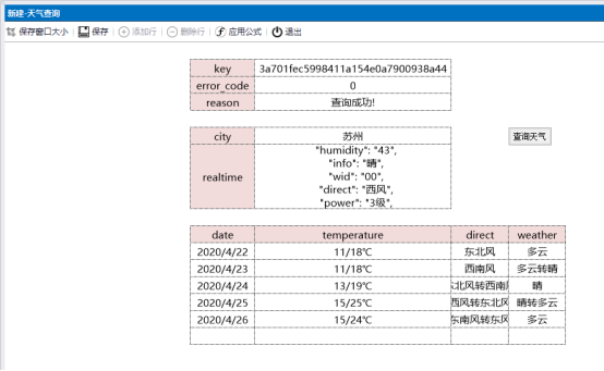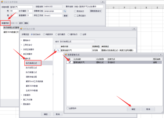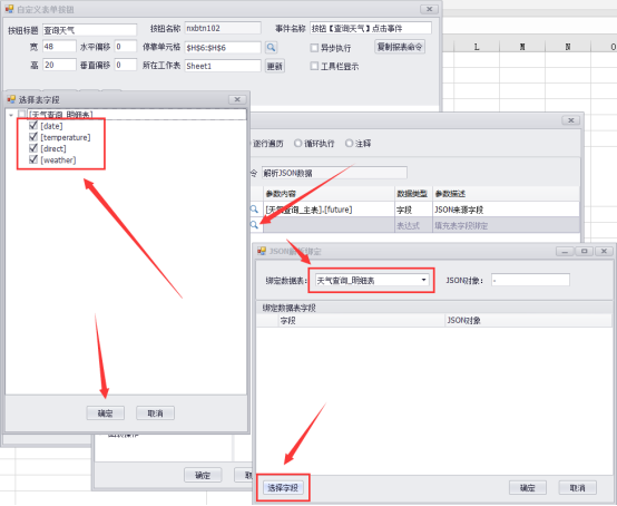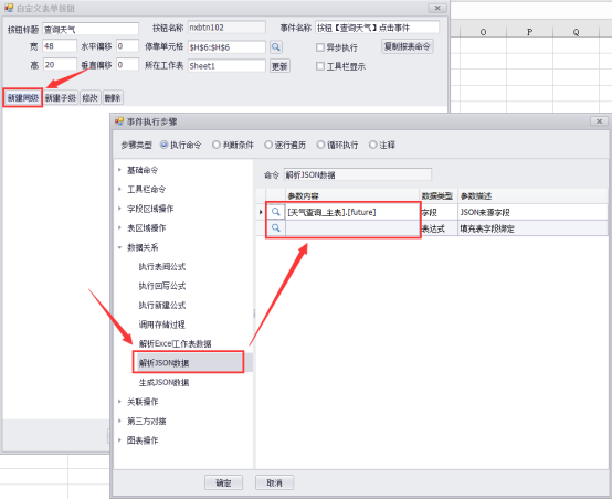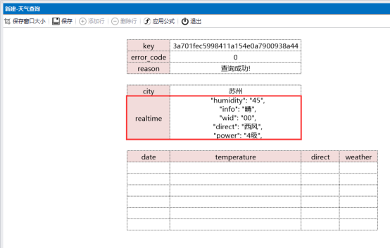 到这里future字段就解析完毕了,可以将前面创建的【查询当前天气】的表间公式关联到同一报表按钮上,如下图: