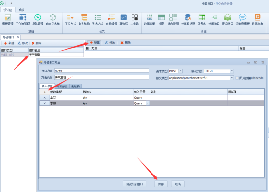 首先,先定义接口:【设计区】—【外部接口】—【新建】