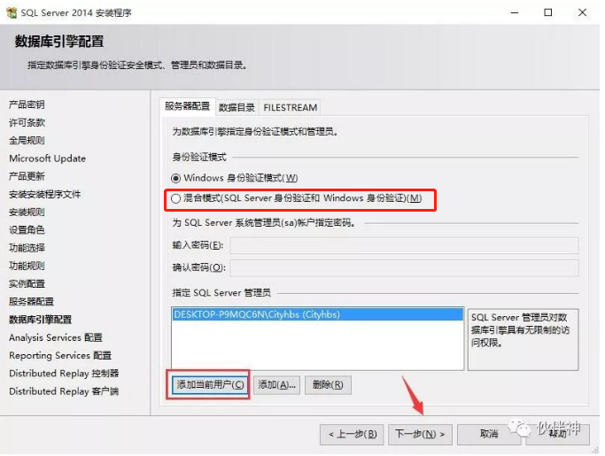 备注:安装时要选择混合模式