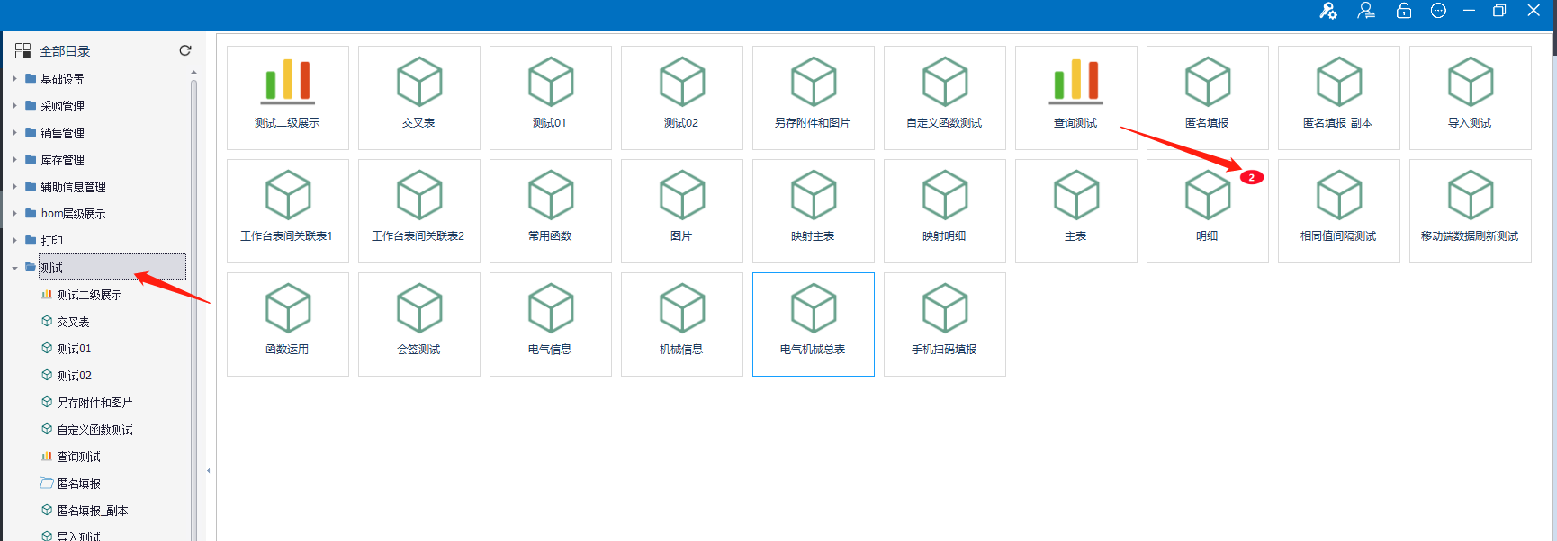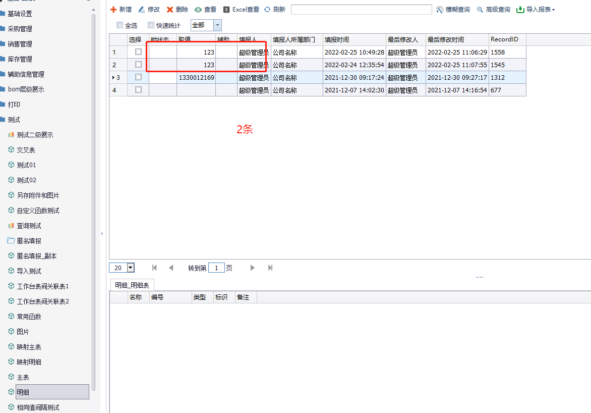 - 场景-前台表和自定义报表标识组合展示出入库情况