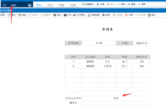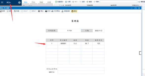 多个员工要在一张单上进行填写签到信息,所有员工签完之后提交到车间主任进行审批