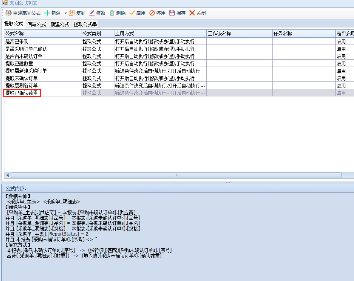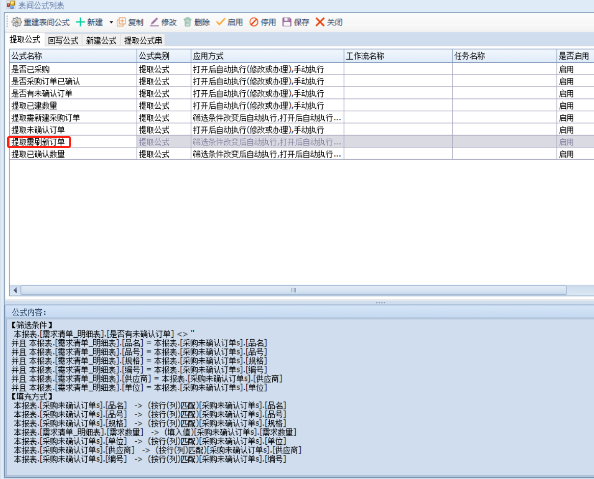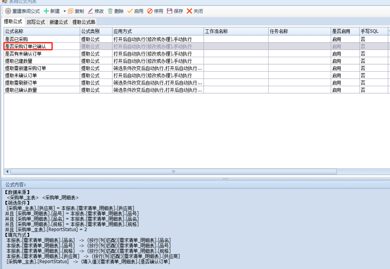 这里建立生成采购订单s、采购未确认订单s用来辅助新建使用,即未生成采购订单或生成采购订单但已确认审核则提取到生成采购订单s通过这个明细表新建,生成采购订单但是未确认则提取到未确认订单s去刷新