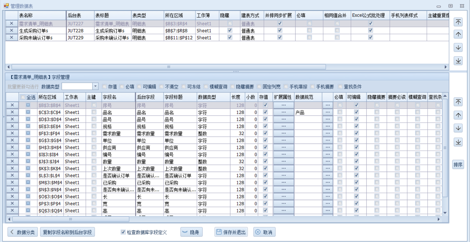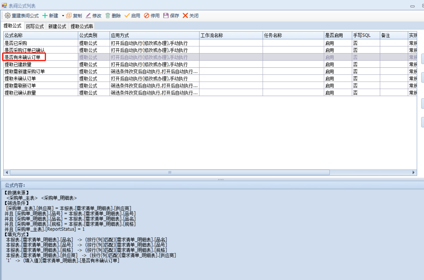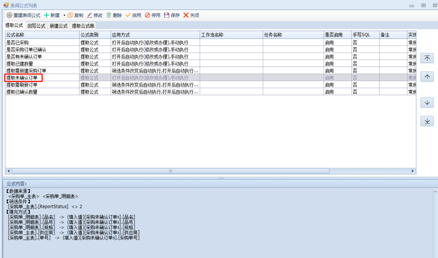 这里建立生成采购订单s、采购未确认订单s用来辅助新建使用,即未生成采购订单或生成采购订单但已确认审核则提取到生成采购订单s通过这个明细表新建,生成采购订单但是未确认则提取到未确认订单s去刷新