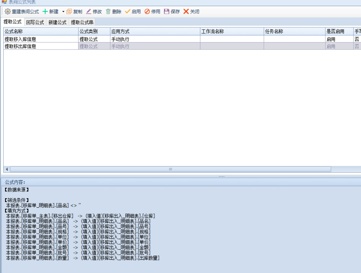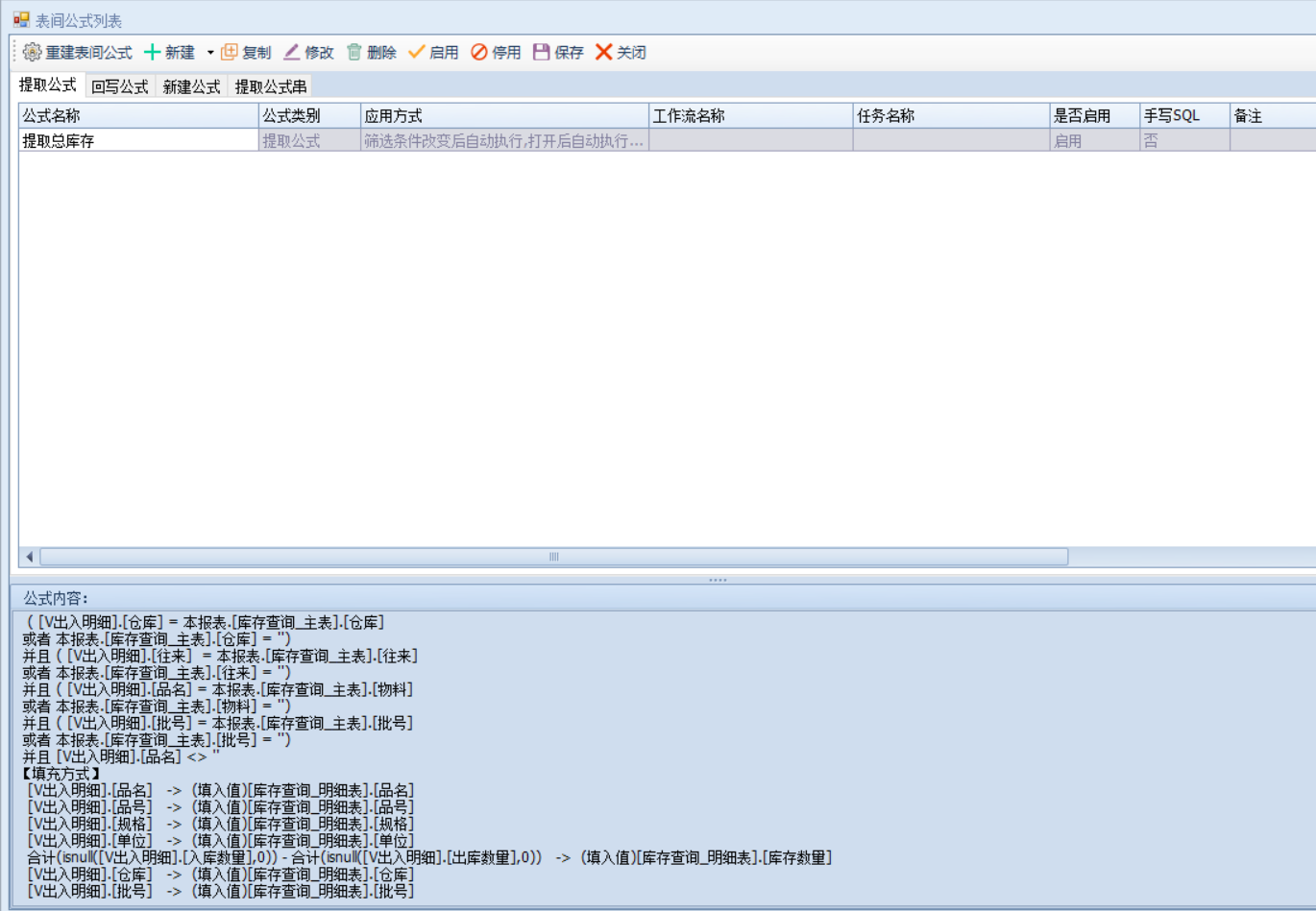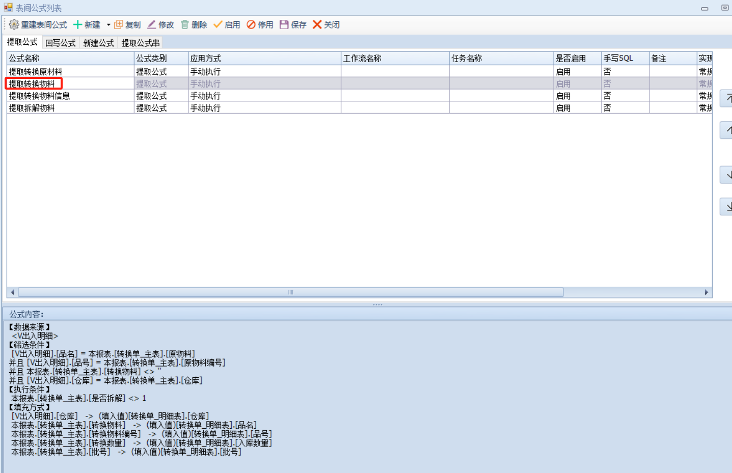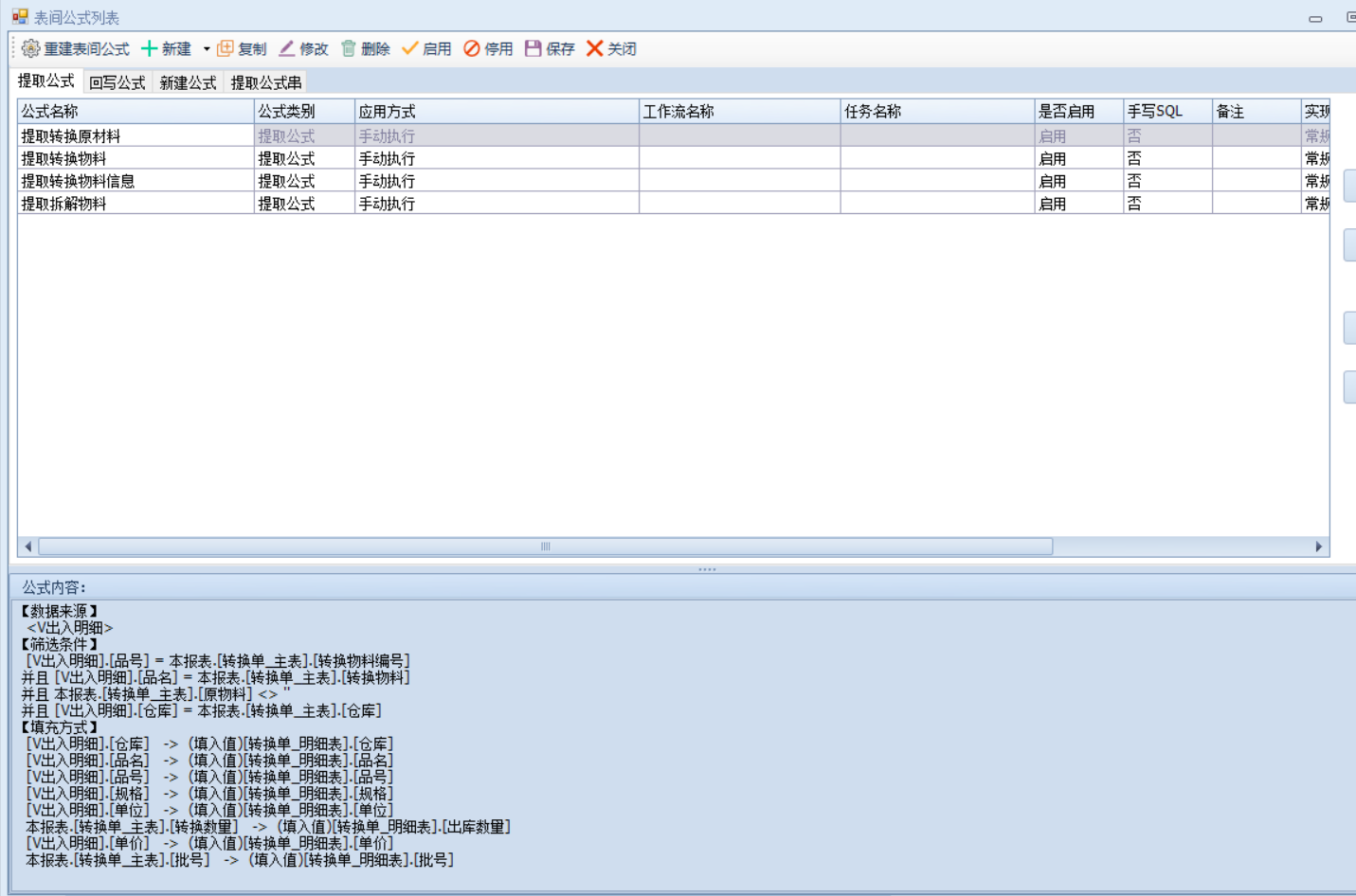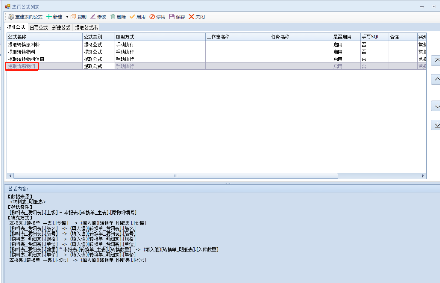 通过表间公式实现库存物料的转换或拆解,即将某一物料转换为其他物料,或将某成品物料拆解为原料物料