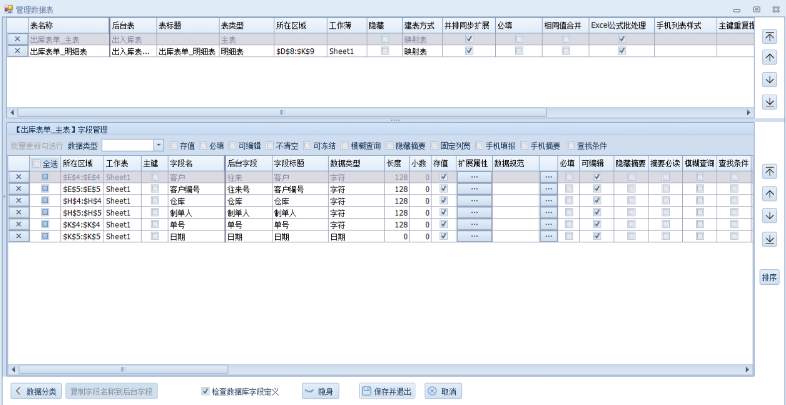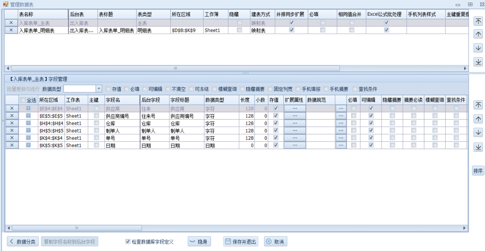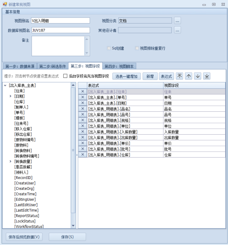 注意:这里出库单、入库单都是映射表,后台表都是出入库表,这样方便后续的库存计算,以及查看出入库情况