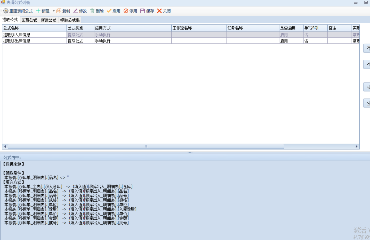 通过表间公式实现将某仓库的库存物料移动到另一仓库
