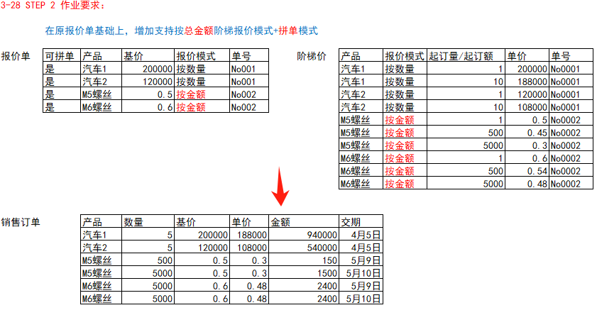 拼单模式中,需要按照单号来拼,当同单号情况下,不同产品的数量/金额按照阶梯价规则报价