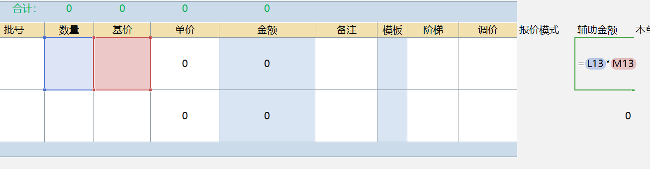 本次作业加入按金额阶梯报价功能,所以这里需要金额辅助字段,根据数量乘以基价的金额来阶梯报价