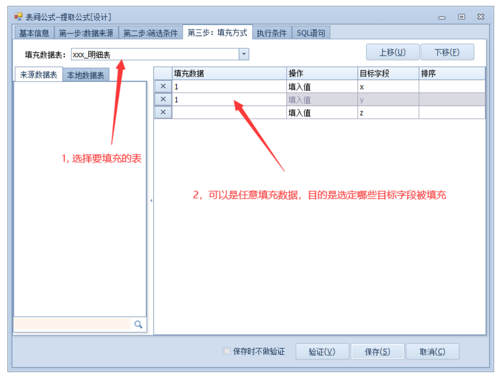 创建好一个提取表间公式,确定填充数据表 和 填充目标字段