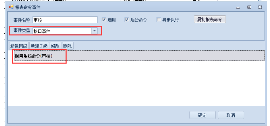 首先在模板中建立一个接口事件,调用系统命令【审核】