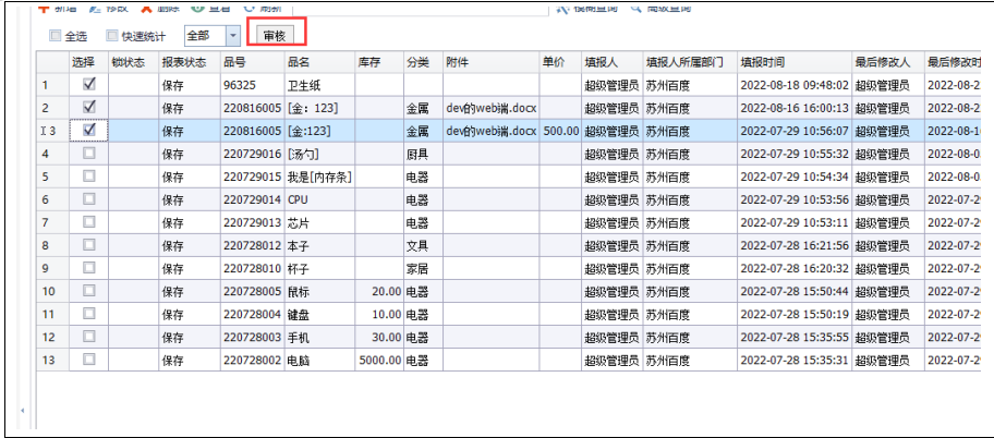 在审核报表时,要一张张报表打开后再进行审核,并且每次只能审核一个报表,为了更加简洁快速的操作,我们使用工作台按钮批量审核