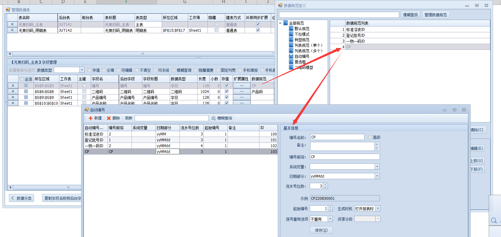 主表字段【产品编号】和【产品名称】分别使用无焦捕获规则(CP,08),两个都可以识别到产品编号码,只要包含自己(CP,08)都可以识别。